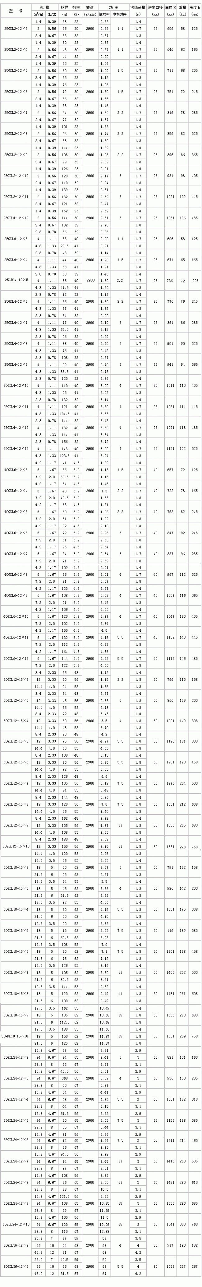 五、GDL型立式多級管道離心泵性能參數表: