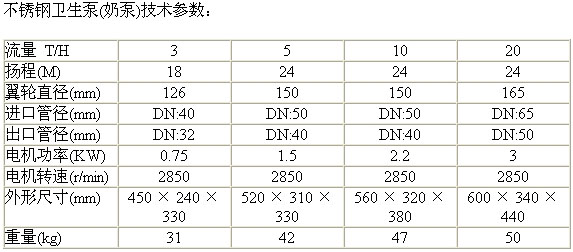 不銹鋼衛生泵![]() 不銹鋼衛生泵 更多信息不銹鋼衛生泵(奶泵、飲料泵)主要用途: 衛生泵又名離心式飲料泵、奶泵、不銹鋼飲料泵,適用于輸送牛奶和其它類似膠質的液體食品之用,吸取物料之最高溫度為 200 | ||||||||||||||||