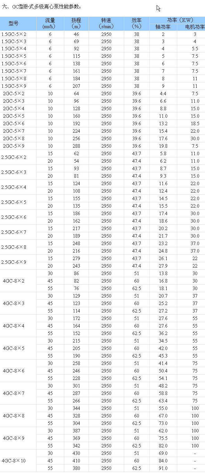 GC型臥式多級離心泵性能 GC型臥式多級離心泵曲線圖