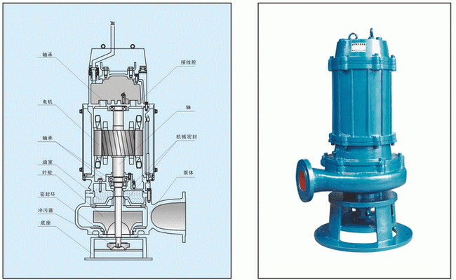 SYWQ型沖污式排污泵是我公司在WQ型排污泵的基礎上改進型的排污泵。它是在WQ型排污泵的底部增設了一只沖污器,隨著電機的高速旋轉,沖污器對泵體周圍的介質進行旋轉式沖擊,有效地把污水池中的淤泥和沉淀物沖起攪均排出,其有效沖擊范圍可以達到10m2-100m2。特別適用于工業、污水處理廠和樓宇的污水池含沉淀物污水排放 執行標準 GB/T12785-1991潛水電泵試驗方法 JB/T5118-2001污水污物潛水電泵 ![]() |
