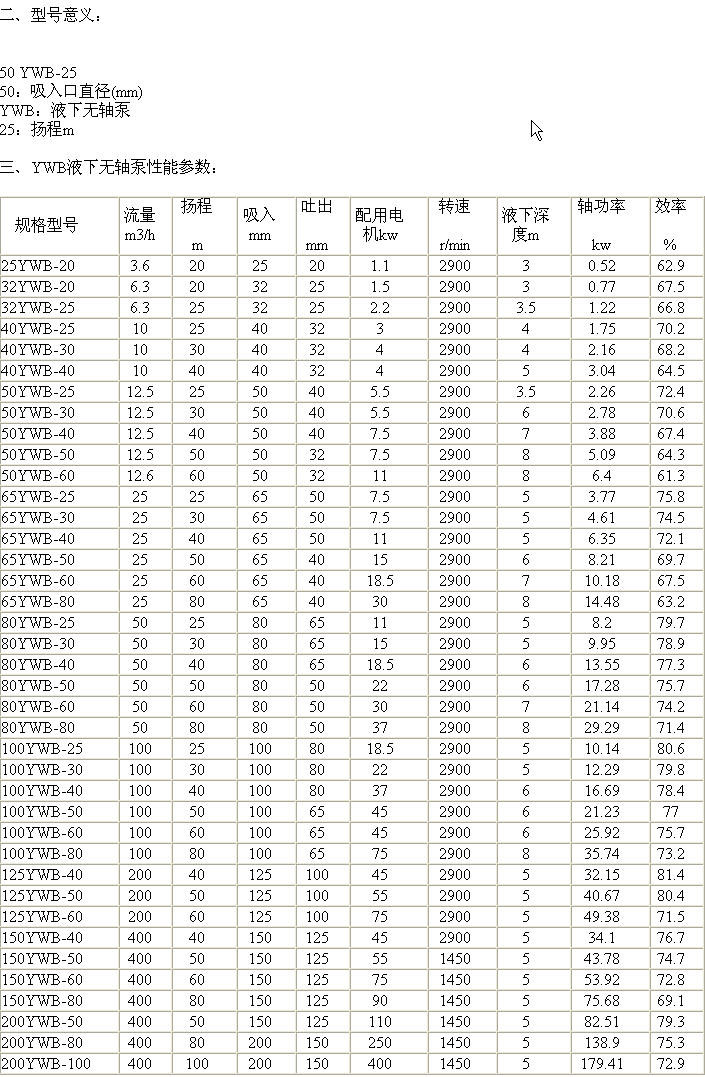 2、YWB液下無軸泵是根據廣大化工行業用戶的要求設計的 產品,該泵采用外混式自吸結構,除首次啟動前須向泵體