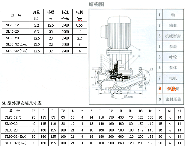 四、SL型酚醛玻璃鋼管道泵性能參數表