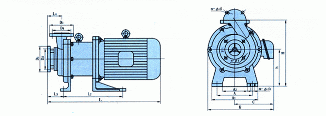 CQB-F氟塑料磁力泵形形安裝尺寸圖: