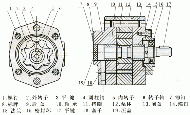 BBBBG型內(nèi)嚙合擺線齒輪泵結(jié)構(gòu)原理圖: