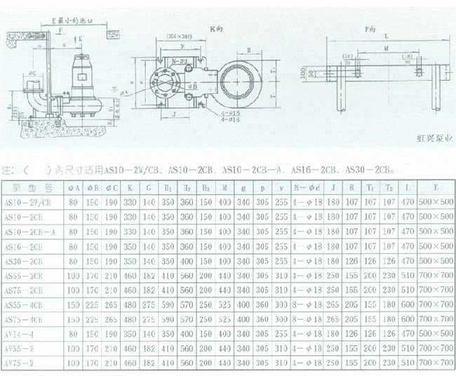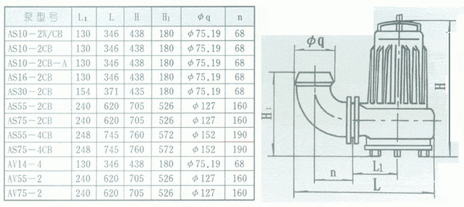 導航:回首頁---當前位置---水泵產品內容頁補充頁 >> S、AV型潛水式排污泵外形安裝尺寸
