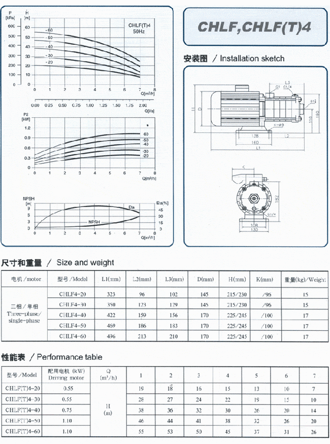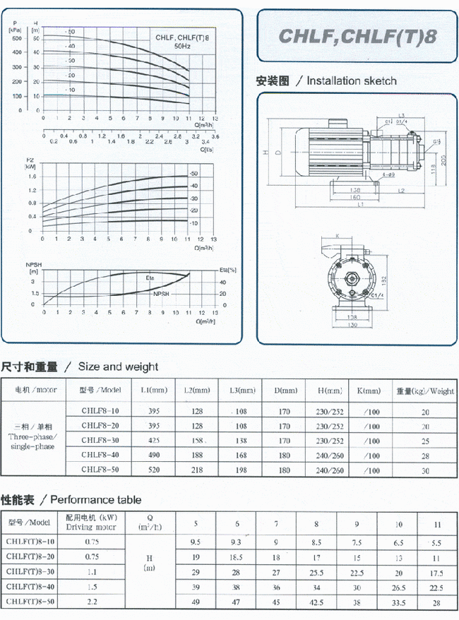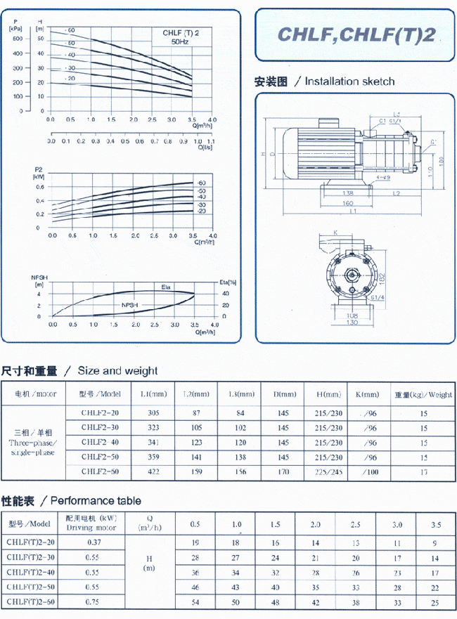 導航:回首頁---當前位置---水泵產品內容頁補充頁 >> CHLF(T)輕型段式多級離心泵性能參數表