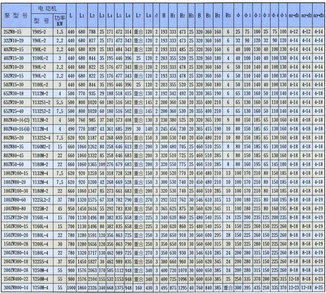 導(dǎo)航:回首頁---當(dāng)前位置---水泵產(chǎn)品內(nèi)容頁補充頁 >> ZW型自吸式無堵塞排污泵外形安裝尺寸