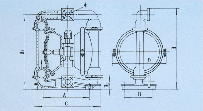 QBY型氣動隔膜泵外形安裝尺寸圖: