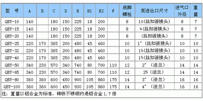 QBY型氣動隔膜泵外形安裝尺寸表: