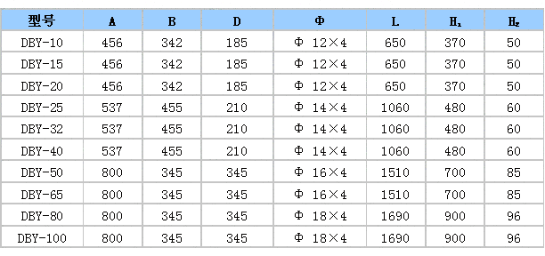 DBY型電動隔膜泵外形安裝尺寸表: