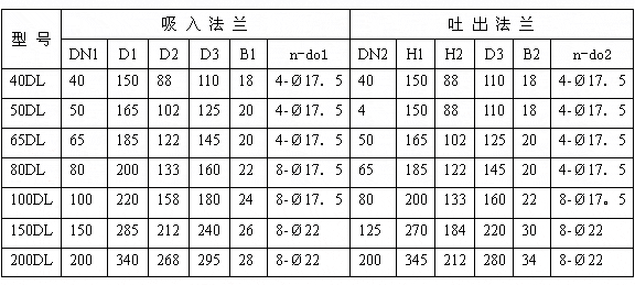 DL型立式多級(jí)離心泵法蘭安裝尺寸表: