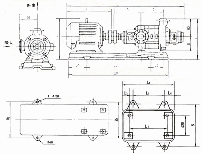 TSWA型臥式多級離心泵外形安裝尺寸圖: