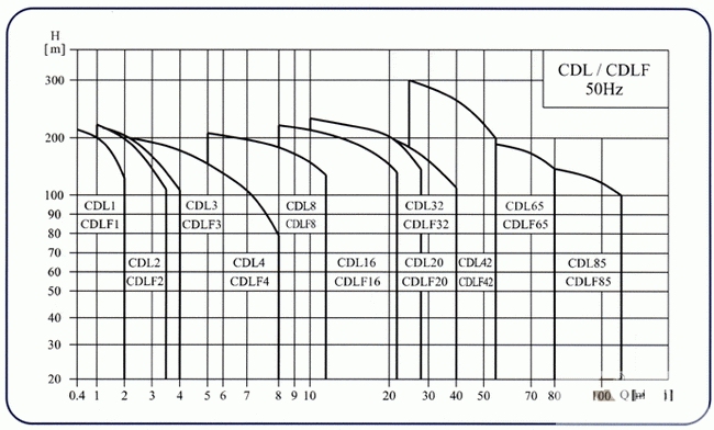 CDLF型輕型不銹鋼多級泵|曲線圖譜