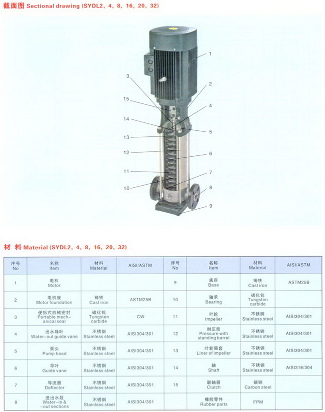 導航:回首頁---當前位置---水泵產品內容頁補充頁 >> SYDL不銹鋼多級離心泵參數一