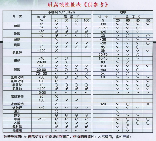 導航:回首頁---當前位置---水泵產(chǎn)品內(nèi)容頁補充頁 >> FPG耐腐節(jié)能管道泵耐腐蝕性能表