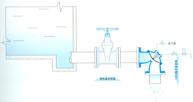 產品概述 100S角式排泥閥是一種角型隔膜式截止類閥門。通常安裝在污水處理廠沉淀池底部,用以排除底部沉淀的泥砂和污物。閥門內部為尼龍強化橡膠隔膜,并設計為角型結構,利于污物的順利排除,安裝方便,使用壽命長。 典型安裝示意圖