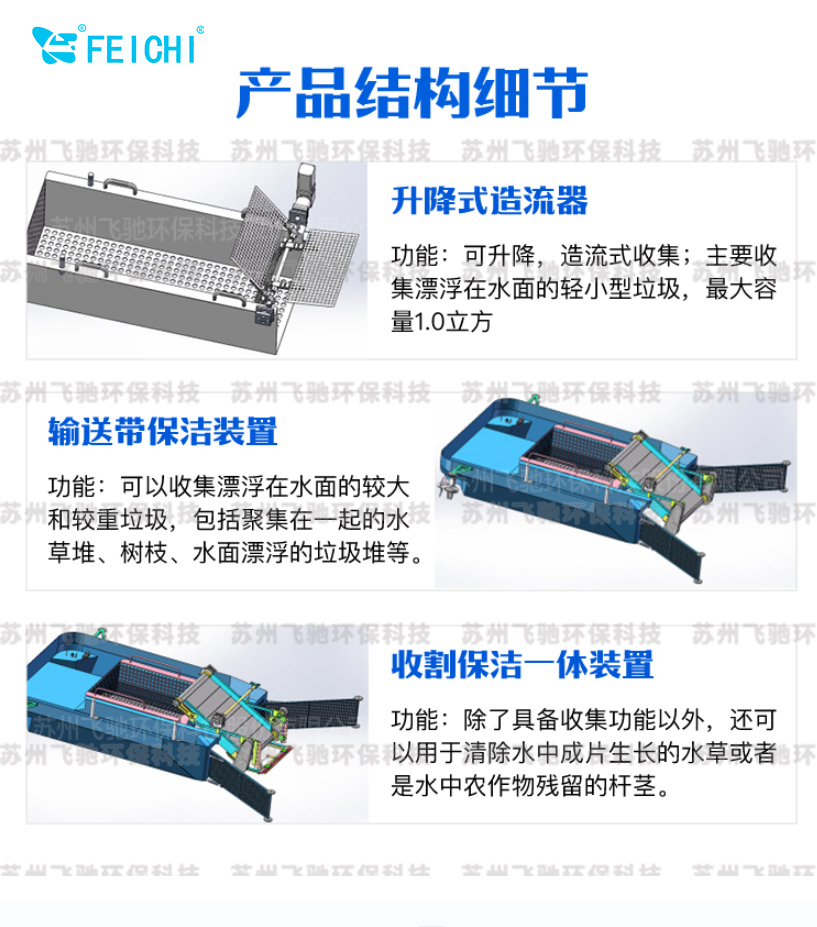 +用于清理水面垃圾、收割水草、水質監測等功能,完全無人作業或者人工手動作業,減少水面保潔行業的人力、物力并提高安全性。