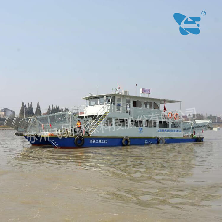 水域保潔供應(yīng)商:飛馳環(huán)保生產(chǎn)打撈船,割草船,浮萍收集船