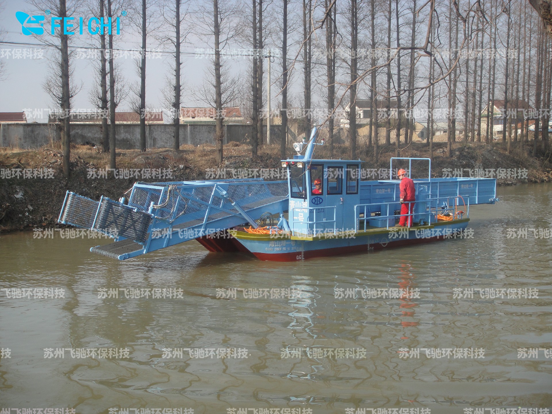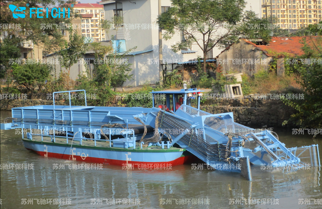 水域保潔供應(yīng)商:飛馳環(huán)保生產(chǎn)打撈船,割草船,浮萍收集船