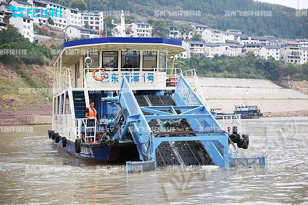 +40噸全自動機械化清漂船是我公司自主研發設計的新一代庫區水體保潔船。