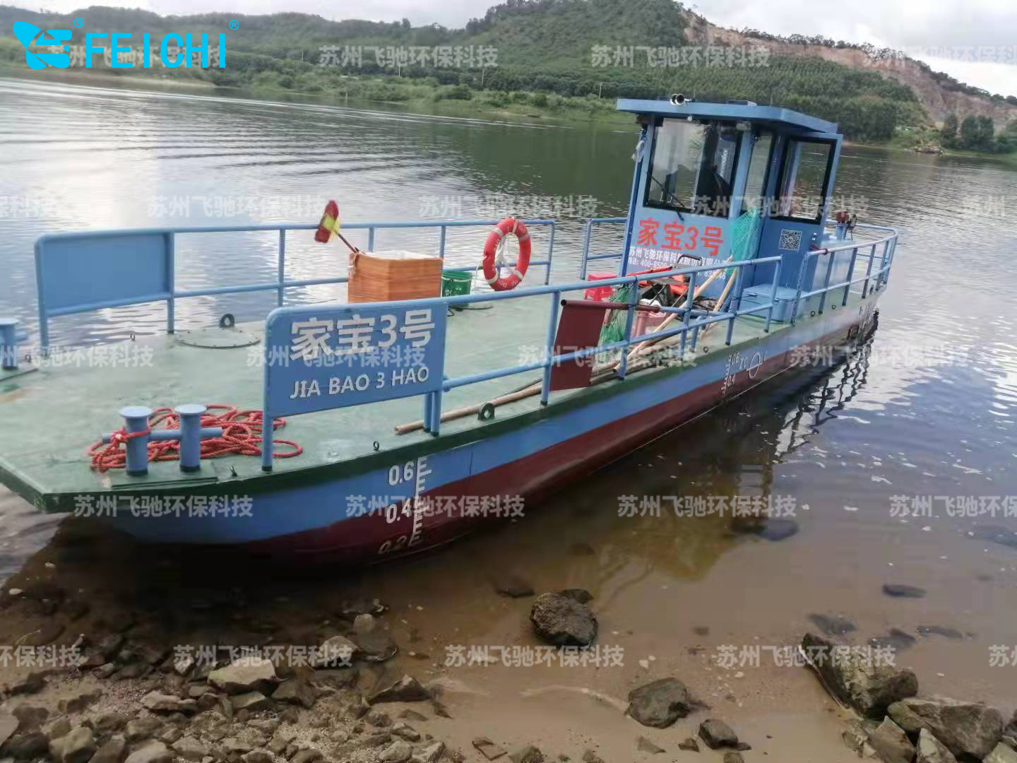 水域保潔供應(yīng)商:飛馳環(huán)保生產(chǎn)打撈船,割草船,浮萍收集船