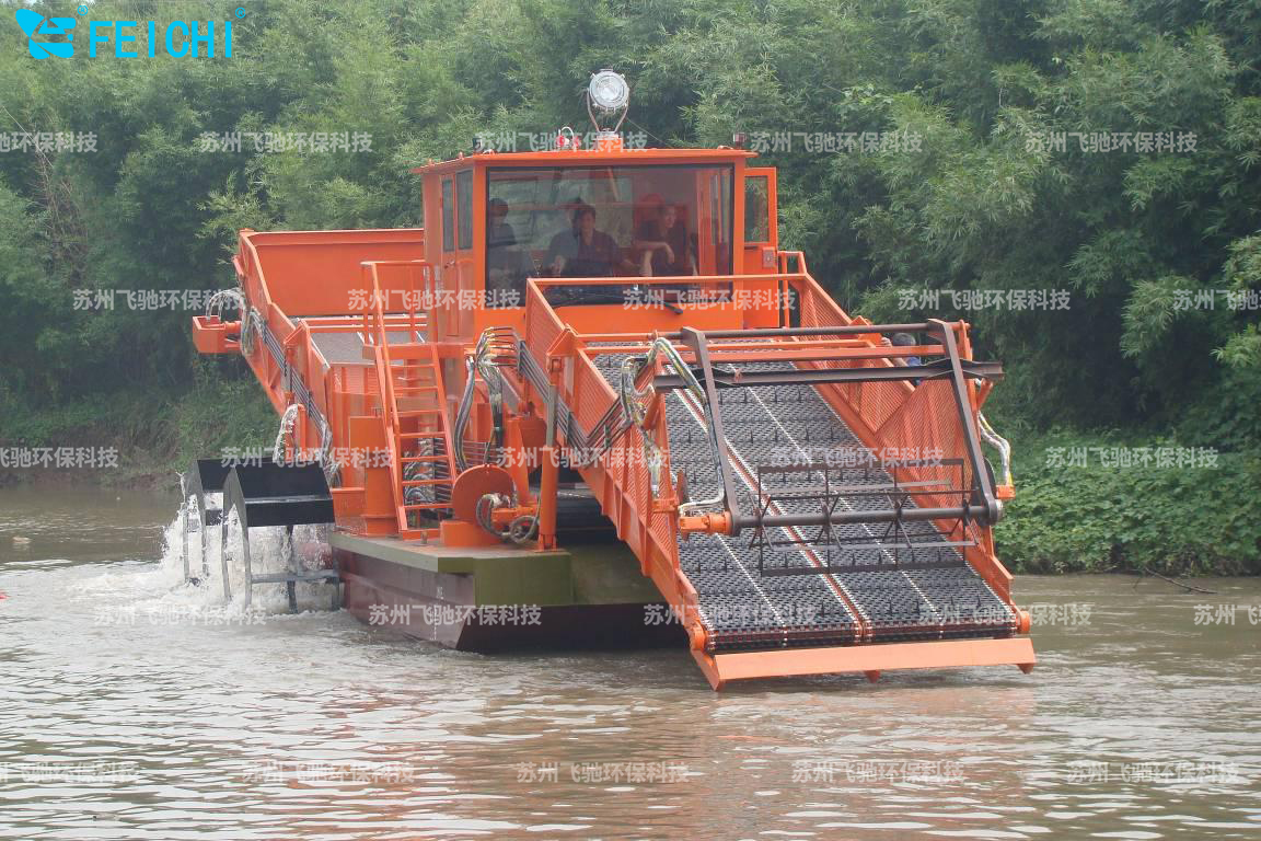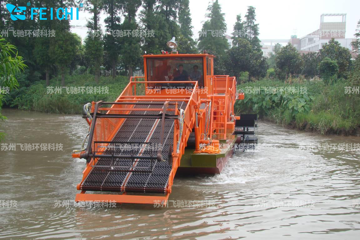 水域保潔供應(yīng)商:飛馳環(huán)保生產(chǎn)打撈船,割草船,浮萍收集船